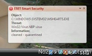 หน้าตาของเครื่องที่โดนเข้าไปแล้ว และที่เครื่องก็ได้ติดตั้ง NOD32 เอาไว้จะมีอาการคือ รันตัวเองตลอดเหมือนจะฆ่าได้ ซึ่งจริงๆแล้วฆ่าไม่ได้ครับ
